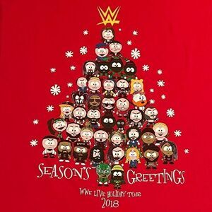 ’18 Official WWE Live Holiday Tour x South Park Red Graphic Tee Shirt / Size L