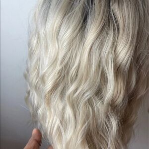- 💫 18” PLATINUM BLONDE BROWN ROOTS WAVY LACE FRONT WIG * NEW*
