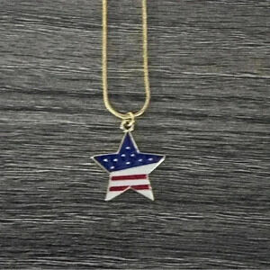 18” Patriotic Star Necklace with Gold Plated 1.2mm Snake Chain