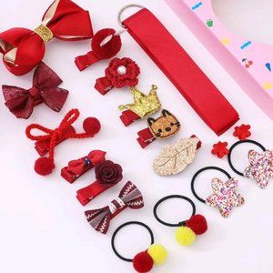 18 Piece Toddler Girls Bow and Flower Hair Accessory Gift Set Red