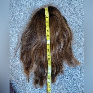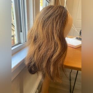 💯 18” REMY GOLDEN BROWN THICK WAVY HUMAN HAIR WIG MONOFILAMENT COMB ATTACHMENT