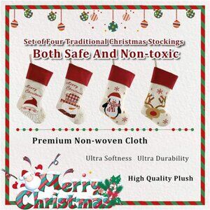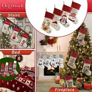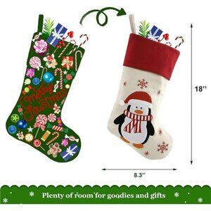 🧿FEATURES: Our Christmas stocking sets are designed with Santa Claus, snowman, cute reindeer and penguin which with the gifts boxes in their hands. The size of each stocking is about 18 inches tall, perfect size for candies and various gifts. The Christmas stockings come in classic red and white colors. And the embroidered patterns make the images more three-dimensional and vivid.
