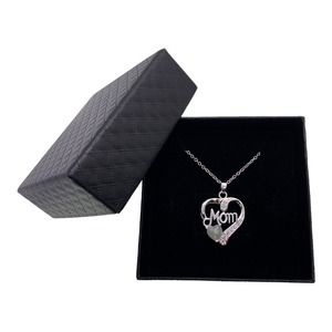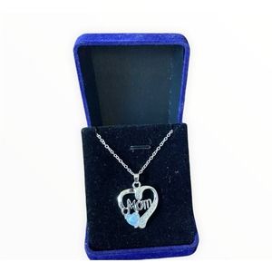 18" Silver Imitation Diamond Opal Mom Heart Necklace in Gift Box