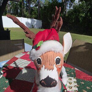 18" Tall Annalee Posable Christmas Reindeer Santa Hat Pockets Figure 2006