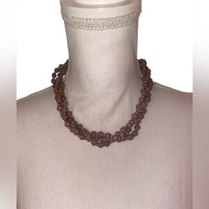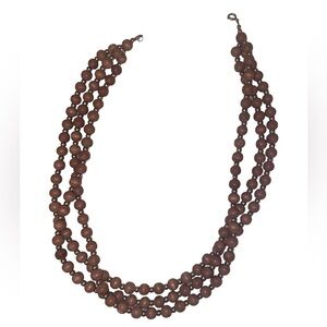 18” Vintage 3-Strand Wooden Bead Necklace in Med BRN Separated w/ Metal Spacers