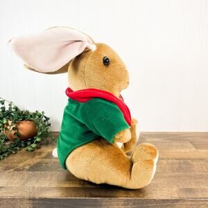 18” Vintage Christmas Velveteen Rabbit Plush Green Coat Commonwealth 1995
