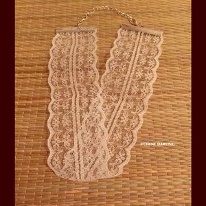 White lace choker. Silver accent hardware. Imported, white lace/silver plated metal/nickel/lead free.