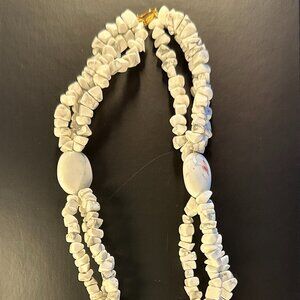 🤍 18” White Howlite Double-Strand Statement Necklace – Polished Gemstones