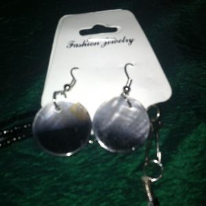 Black beaded necklace with matching shell diamond shape pendent and matching earrings