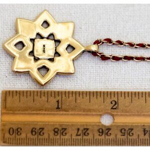 18 inch, Vintage Abstract Star Red Rhinestone Gold Tone Necklace by Monet