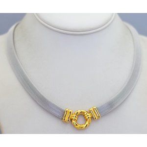 18 inch, Vintage Circle Ring Center Silver Tone Necklace