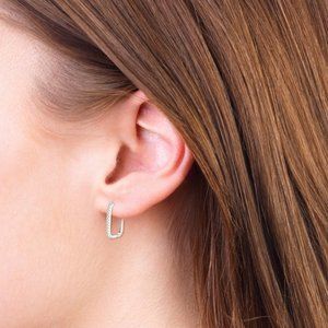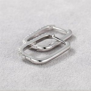 1.8 mm Moissanite Diamond Pave Rectangular Huggie Hoop Earrings NEW