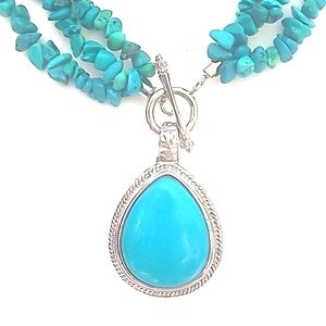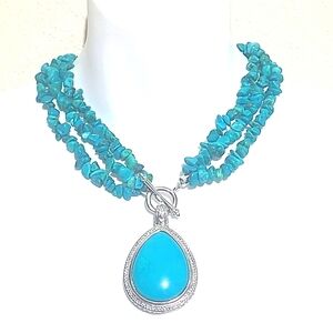 18" necklace with pendant blue howlite in silver hardware toggle clasp