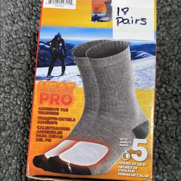 Heat Pro adhesive toe warmers for up to 5 hrs of warmth.