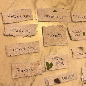 18 unique thank you tags Handmade paper Each is unique Giving a boho vibe Flowers Leaf Paper