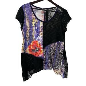 180 VTG lace patchwork little short sleeve whimsy goth asymmetrical blouse sz XL