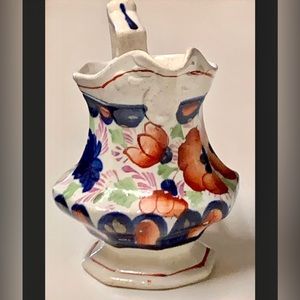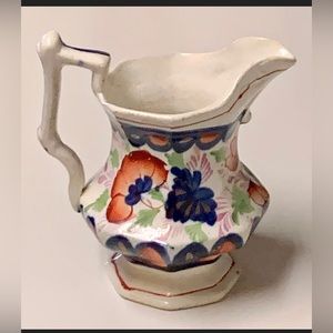 1800s Antique Gaudy Welsh Primrose Pattern 8 Sided Creamer