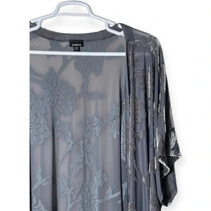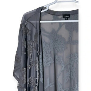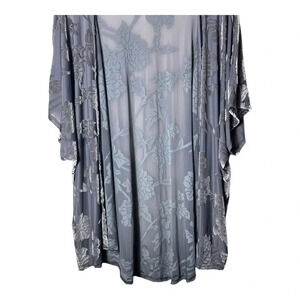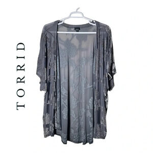 1804. TORRID OPEN FRONT SHORT SLEEVE KIMONO SHEER WITH VELVET FLORAL PATTERN