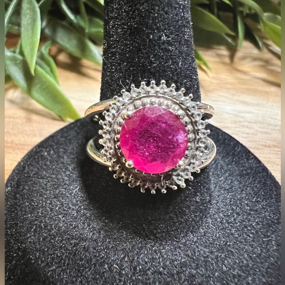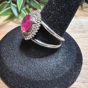 1.80CT ROUND MAHALEO RUBY WITH .28CTW ROUND WHITE TOPAZ STERLING SILVER RING S8