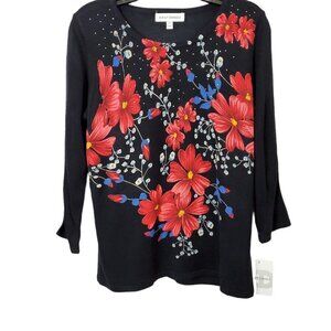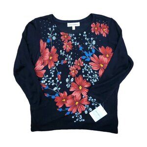 Emily Daniels Floral Lightweight Black Sweater Size S/P NWT