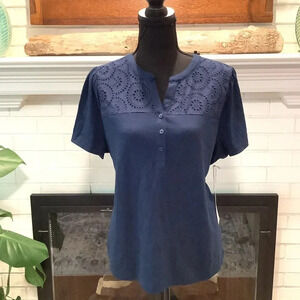 #181 NWT Liz Claiborne Navy Eyelet Short Sleeve Top Size Large