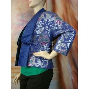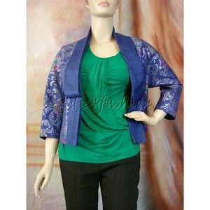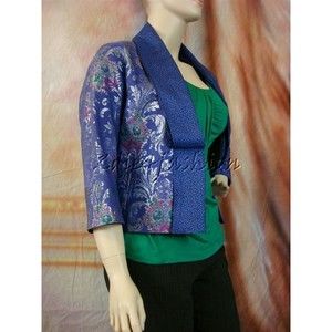 $1815 New with tag ETRO Blue Purple Silver Brocade Art Print Hook Eye Jacket 10 / 44