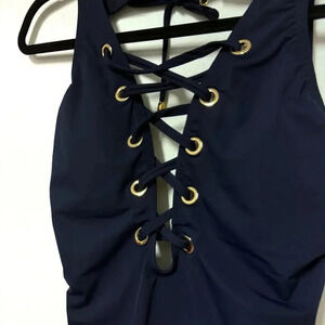 $182 Amoressa The Ramones Stevie One Piece Swimsuit Navy - Lace Up Classic