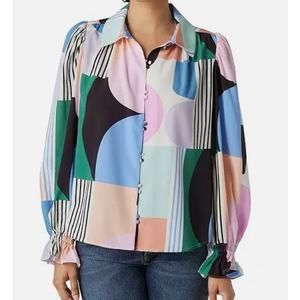 $182 CROSBY by Mollie Burch NELL Balloon Sleeve Button Front Shirt | XXL Multi