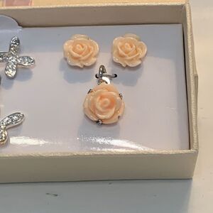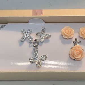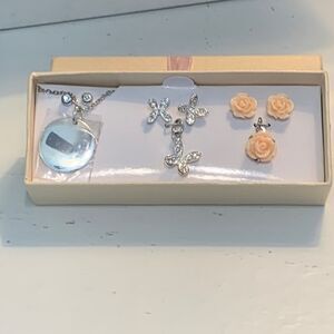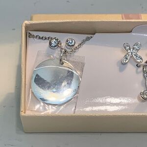 18-20” Silver Toned Necklace Earrings and Charm Set