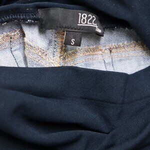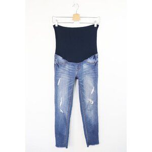 1822 Denim Distressed Maternity Crop Jean Frayed Raw Cut Hem Stretch Denim in Irene, Mid Blue. Size Small.