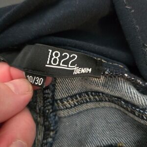 Keywords: maternity jeans, 1822 denim, girlfriend jeans, distressed jeans, dark wash jeans, frayed hem jeans, womens jeans, size 10, elastic waistband, belly band, comfortable jeans, casual jeans, stylish maternity, pregnancy jeans