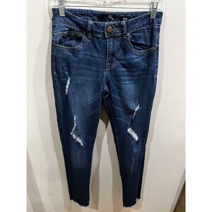 1822 Jeans Women's Size 4 Blue Taylor Straight Distressed Whiskered Frayed Denim