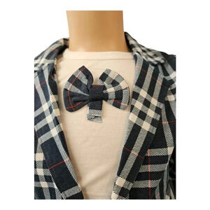 Blue Fashion Plaid Boys 3 Piece Suit Set with White Long Sleeve Undershirt with Attached Bowtie, Sleek and Sophisticated OverCoat with Single Breasted Button, Long Matching Pants with Elastic Waist and Real Pockets.