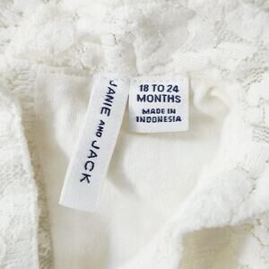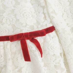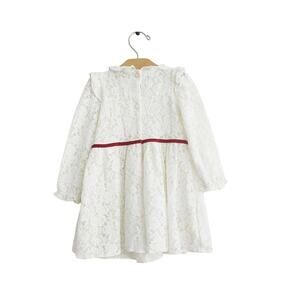 Janie and Jack lace dress lined with soft cotton under and red velvet ribbon trim at waist. Buttons in back. Excellent condition