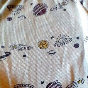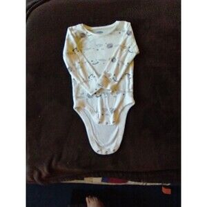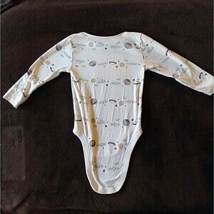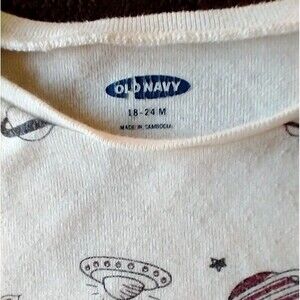 Long sleeved infant bodysuit with a planetary/ space theme. Old Navy brand, size 18-24m. Very good pre-owned condition with light wear from normal use. Smoke and pet free home.