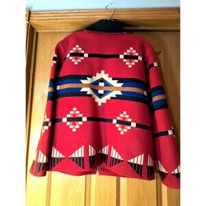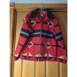 183. Pendleton Originals Southwestern Aztec Wool Jacket Leather Collar S Unisex