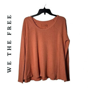 1831. WE THE FREE WAFFLE KNIT LONG SLEEVE TOP SIZE MEDIUM ORANGE IN COLOR LOOSE