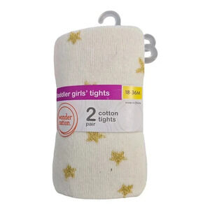 18-36M Cream with Gold Stars and Navy Blue Toddler Tights Set of 2