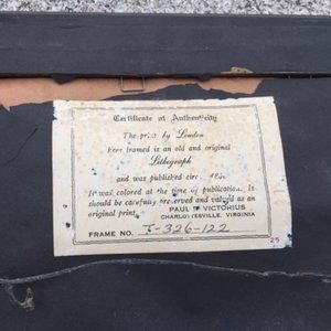 Preowned, antique, some discoloration/staining on print due to age, black backing on back has tears and rips from age