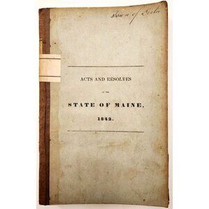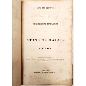 1842 Acts & Resolves State Of Maine 1st Edition 22nd Legislature Public Law F5