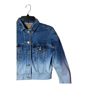 1844. AMERICAN EAGLE CROPPED DENIM JEAN JACKET FULL BUTTON UP OMBRE COLOR XXS