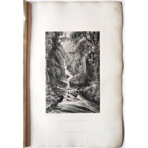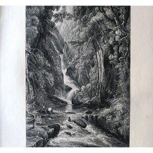 1844 Birks Of Aberfeldy Engraving Victorian Scotland Bathing Women DWSS19