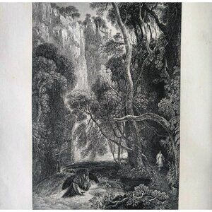 1844 Doon River Scene Engraving Victorian Scotland Woman In Woods DWSS18