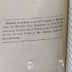 "Entered according to act of Congress in the year 1845 by Herman Cope, Treasurer, in trust to the American Sunday School Union, in the Clerk's office of the District Court of the Eastern District of Pennsylvania."