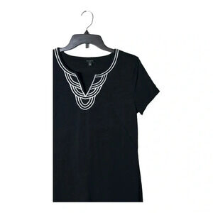1855. TALBOTS SHORT SLEEVE KNITTED MIDI LENGTH DRESS SIZE SMALL BLACK/WHITE