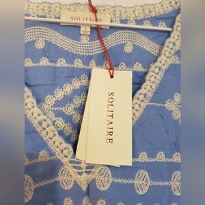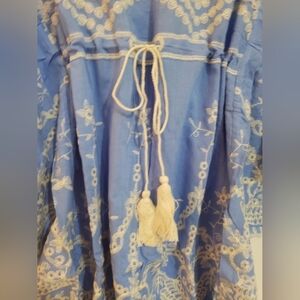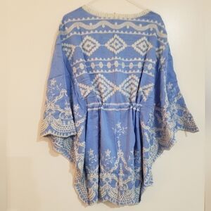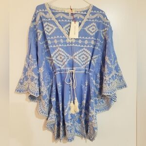 Solitaire Embroidered Boho Tunic Dress – Blue & Cream – NWT – Size L