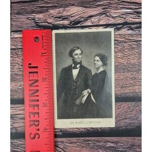 Step back into American history with this original 1860s carte de visite featuring President Abraham Lincoln and First Lady Mary Todd Lincoln. A cherished relic from the Civil War era, this small photographic portrait captures the iconic couple in a moment of quiet dignity during one of the most turbulent times in U.S. history.