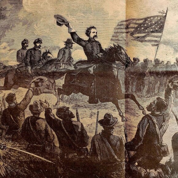 1864 General Sherman Civil War Dallas Wood Engraving Centerfold Victorian HM1