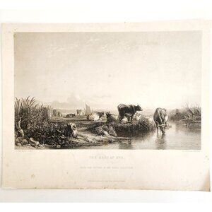 1870s The Rest At Eve Steel Engraving Victorian Tennant Farm Animals DWXX8