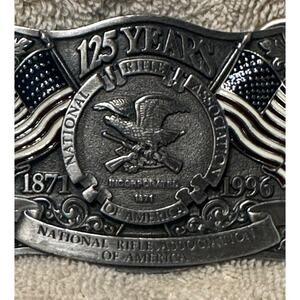 1871-1996 NRA 125 Years Belt Buckle National Rifle Association Flag Eagle vtg